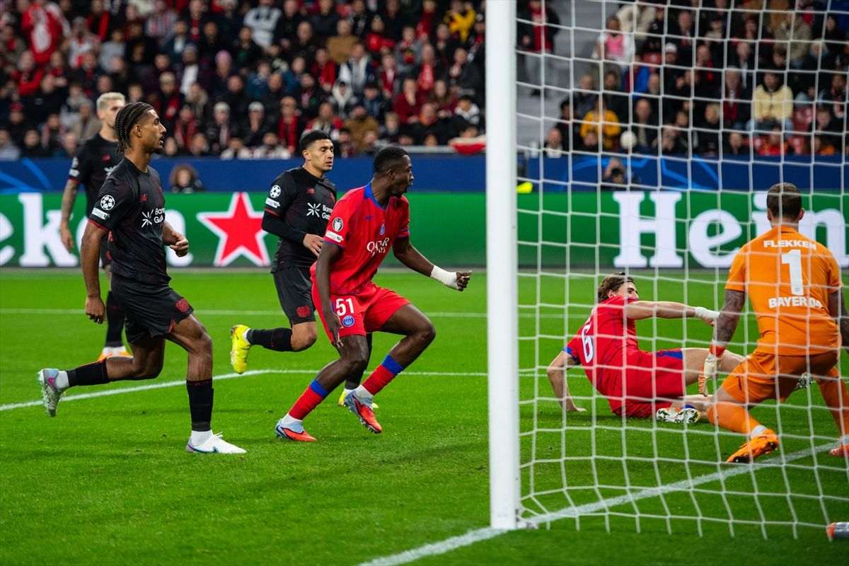 Abrió la cuenta para el PSG a los 7 minutos el ecuatoriano Willian Pacho, asistido por Nuno Mendes. No obstante, el cuadro alemán tuvo la oportunidad más clara de gol para empatarlo, pero Alejandro Grimaldo erró un penal a los 25. Todo estaba más cuesta arriba para los de Renania del Norte-Westfalia cuando expulsaron a Robert Andrich a los 33 minutos.
