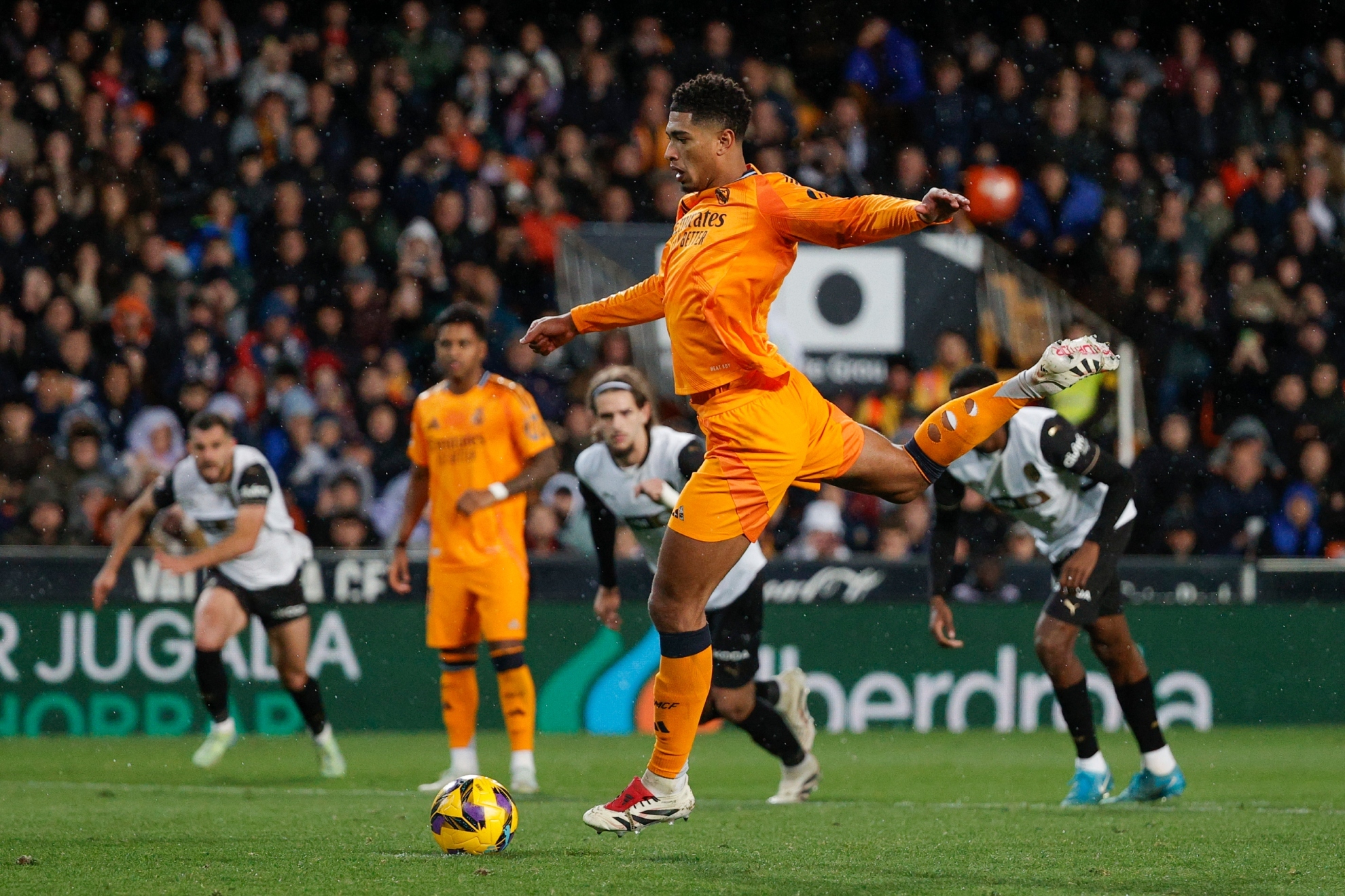 Los madrileños sabían que necesitaban la victoria para empatar a Barcelona en la punta y desde el comienzo hicieron sentir su localía, pero poco a poco en el juego se impusieron los dirigidos por Hansi Flick. Kylian Mbappé fue el protagonista en la primera mitad luego de que se le anule un tanto por fuera de juego.