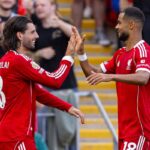 A los 34 minutos, un pase de Oscar Bobb para Omar Marmoush derivó en una buena jugada del egipcio y apareció Erling Haaland para, de un puntazo, darle la ventaja al City.